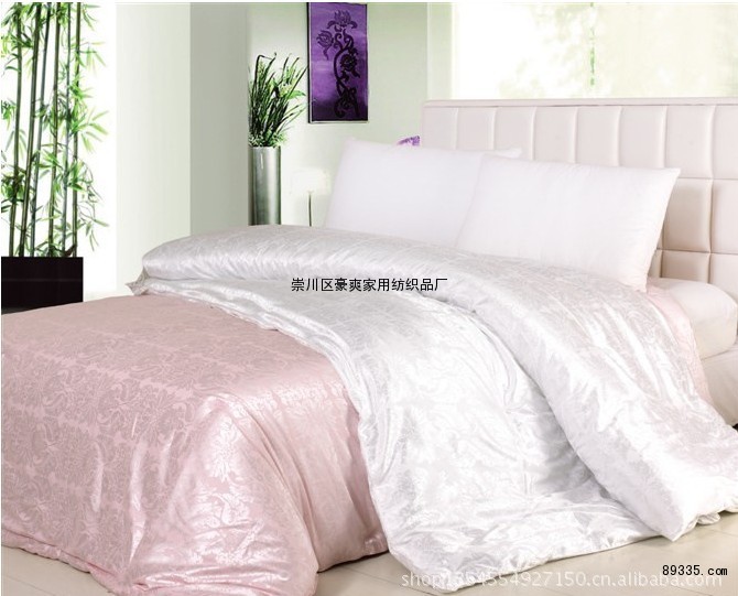 柔软暖和,重量轻巧,冬暖夏凉,不干燥,不上火,盖蚕丝被不像别的被子从脚底或从四周漏风。 蚕丝被优点还有就是蓬松度高,不板结,无异味;面料采用高支高密全棉面料,能与蚕丝完整结合,使产品更具亲肤性和舒适感;所有产品的规格、款式、面料可按客户的要求加工;绗绣工艺采用电脑绗缝绣花技术,产品美观、内置蚕丝牢固、耐用,免反洗;桑蚕丝被的手工制作工艺,其做工细腻,只需轻轻几个定点,蚕丝蓬松度更高,舒适感更强。蚕丝是自然界中集轻、柔、细为一体的天然纤维,蚕丝被主要成份为动物蛋白质,含有人体必须的18种氨基酸。蚕丝有追风、除湿、安神、滋养及平衡人体肌肤之妙用。其滑爽、透气、轻柔、吸湿、不刺痒、抗静电.特有的透气、排湿功能使蚕丝被更加清爽、润滑而不躁,确保高质量的睡眠,给您无微不至的贴身关怀.蚕丝被已经获得广大消费者的认可及好评。