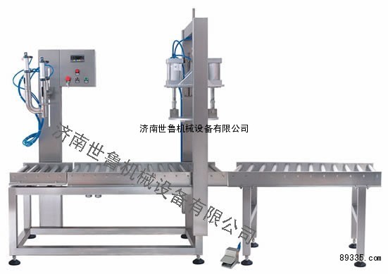 此灌装机适合10L-25升敞口桶的灌装,灌装时由人工放置空桶,并启动开始按钮,待灌装完毕后放盖并将桶推到压盖位置,触动脚踏开关进行压盖。压盖完毕后轻推至成品输送机上完成整个操作过程,全程仅需一人即可完成整个生产过程。适用于食品、医药、化工、油类、油漆、涂料、黄油、奶油、墙面漆、地板漆、稀释剂等液体粘稠体的灌装