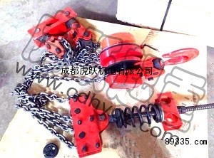 DHP型电动环链提升机由HS型手拉葫芦(去掉手链轮、手拉链、手链轮罩壳等零部件)、盘式制动电机及行星减速器的减速,输出转速和动力,带动葫芦上的长轴旋转,使葫芦上的长轴旋转,使葫芦进行工作,切断电源时则依靠制动电机的制动作用,使葫芦停止工作,重物即停在相应的位置上。
