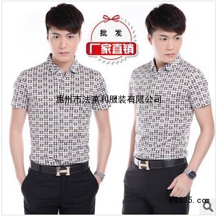 广东男装生产厂家直销夏季短袖衬衣批发代理新款格子翻领修身衬衫