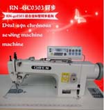 奥玲RN-GC0303上下复合送料直驱电脑同步厚料平缝机(连杆式)(Fork type) ,该机是单针上、下复合送料平缝机适用于缝制各种真皮、人造革、皮革、帆布等中厚料。具备了各项自动剪线、自动倒缝、自动起压脚、自动停缝的功能,操作简易,采用了齿轮油泵自动润滑系统,挑线杆和复合送料机构配有滚针轴承,使得运转更和顺,减少了噪音和震动;上下复合送料可防止缝料层之间的滑移,线迹美观整齐。可轻松车缝6股尼龙线。