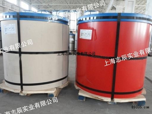 上海宝钢彩涂板卷的包装为立式铁皮精包装,每颗钢卷配有一个木架托盘。