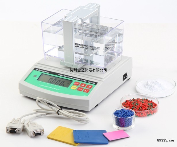 PVC塑料颗粒密度测试仪DE-120M密度精度达万分之一,装配Free Flip免掀盖精密一体成型铝合金测量平台,透明水槽。测量精度更高、操作更简便、更快速、更人性化,更符合新材料实验室作业规范。可显示混合物主要材质含量百分比,适合新材料研究与开发。能自动判定待测样品合格与否,具有警报提示功能。