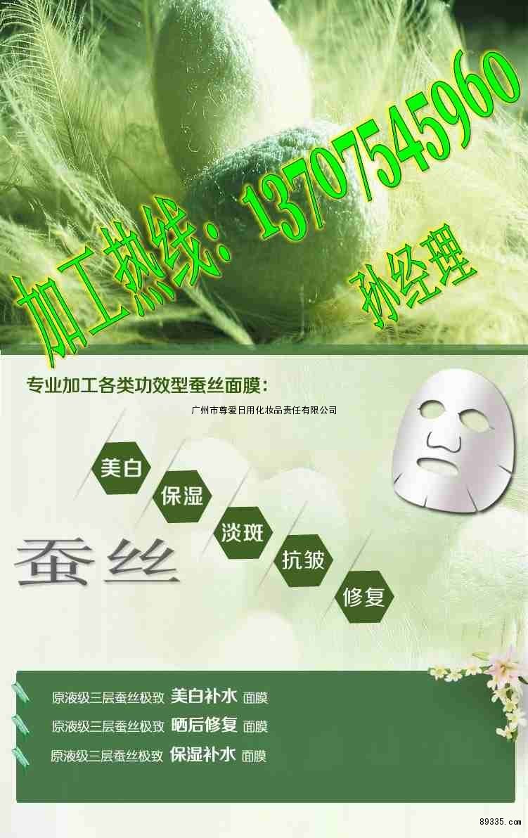 广州尊爱专业蚕丝面膜定制生产|玻尿酸蚕丝面膜OEM代加工|青瓜水嫩睡眠面膜加工|护肤品加工|孕婴童护肤品oem||睡眠面膜代加工|天丝面膜oem|蚕丝面膜代加工|卸妆滋润保湿三合一卸妆油代加工|专业线化妆品加工|全方位提供一站式护肤品oem/odm服务,标准gmpc认证厂房,品质有保障。欢迎国内外客商来电咨询、到厂实地考察。代工热线:13707545960 孙春君(经理) 商务qq:2272731359