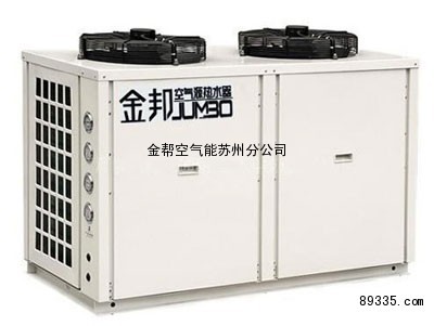 一台压缩式热泵装置,主要有蒸发器、压缩机、冷凝器和膨胀阀四部分组成,通过让工质不断完成蒸发(吸取环境中的热量) →压缩→冷凝(放出热量)→节流→再蒸发的热力循环过程,从而将环境里的热量转移到水中。