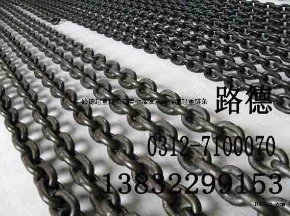 供应质优价廉进口美标、德标标准起重链条,采用优质合金钢起重链条,EN818-2标准起重链条,3倍节距、4倍安全系数、2.5倍试验载荷、优质锰钢。标准80级起重链条,质优价廉,抗拉耐磨,优质80起重链条。采用优质合金钢材质,表面抛光、发黑等处理。知名品牌,值得信赖。