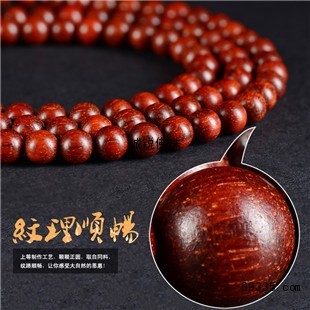 推荐理由】:珠子圆润,色泽如图品相,密度也好,串串都是高密度(绝对是好紫檀才有的重量)!正圆,顺纹,大料取材,是精心挑选出来的!整条纹理顺 畅 色泽基本统一,磨砂原汁原味!真正好的料子是可以直面裸露的!