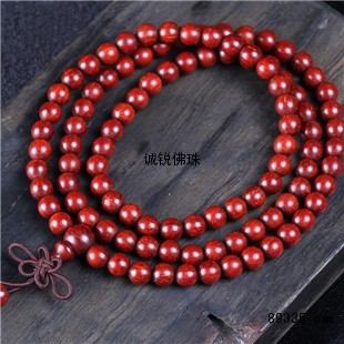 【宝贝名称】高油高密正宗印度小叶紫檀鸡血红老料念珠108颗8mm手串手链男女款