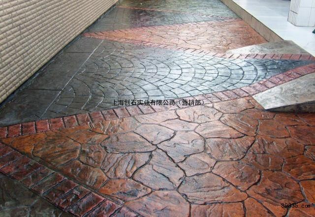 上海创石实业有限公司引进美国高新技术,打造一种全新施工概念的彩色混凝土装饰面层材料—创石压模地坪,压模地坪经过压模、印模工艺使其面层产生不同凡响的石质纹理和色彩。压模地坪具有整体性强、抗压、抗折强度高、不变色、不粉化、耐磨、经久耐用等显著特点, 同时又解决了普通彩色道板的整体性差、高低不平、易松动、使用周期短等缺点。