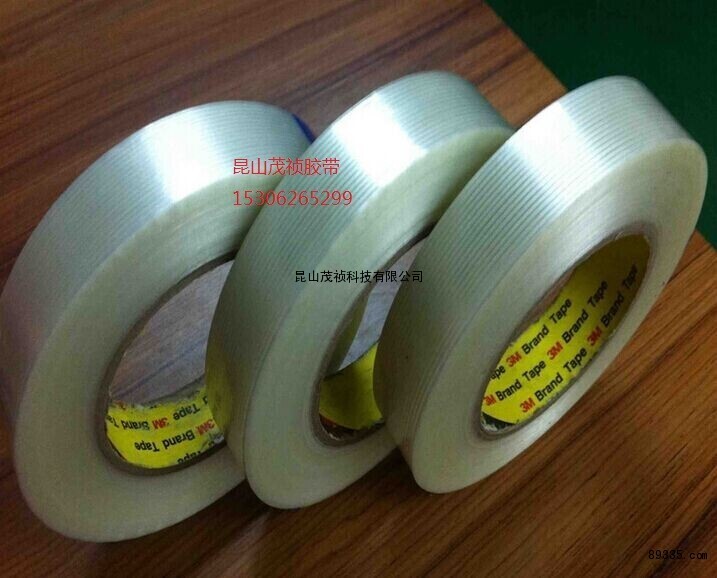强化性能 高强度纤维胶带,很好的耐磨性,特制胶粘剂 不留残胶,具备高粘接力和长久保持力, 用于捆扎及固定管道,家电,家具,钢卷等.无痕.不留残胶.
