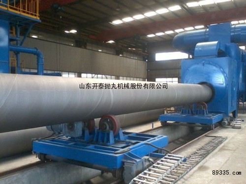 2、直径Φ159 ~Φ2800mm范围内的钢管,采用托轮转动。托轮间距角度可调,实现了钢管直径范围较大、行走速度与旋转速度可调:抛丸器采用低抛式布置,清理效率高,效果好。