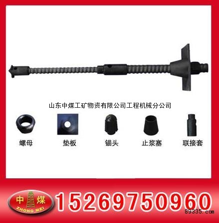 中空注浆锚杆其杆体为全长波形螺纹,配以锚头、垫板、螺母、止浆塞以及专门的快速注浆接头。