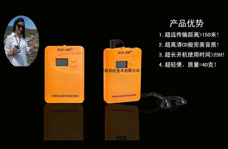 咨询热线:15899855603 邓小姐 QQ:2160812109 应用领域:政府及大企业接待客户参观,国际会议,同声传译机、企业培训,产品推广,展会,旅行社导游带团,博物馆、故宫、寺庙参观旅游等,户内,户外,强噪音,人数众多的团体都能使用。轻松实现一对多的无线讲解模式。