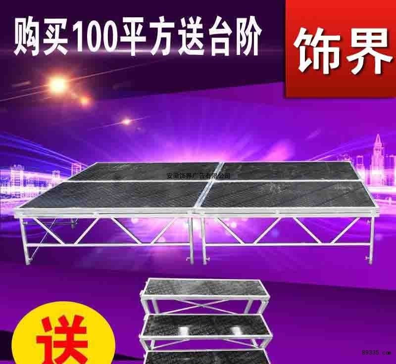 产品品牌:饰界(研发生产:折叠舞台、拉杆舞台、雷亚架舞台、桁架、铁马护栏、道旗等展示用品)舞台高度:0.6米、0.8米、1米等(可加增高调节腿,费用另计)