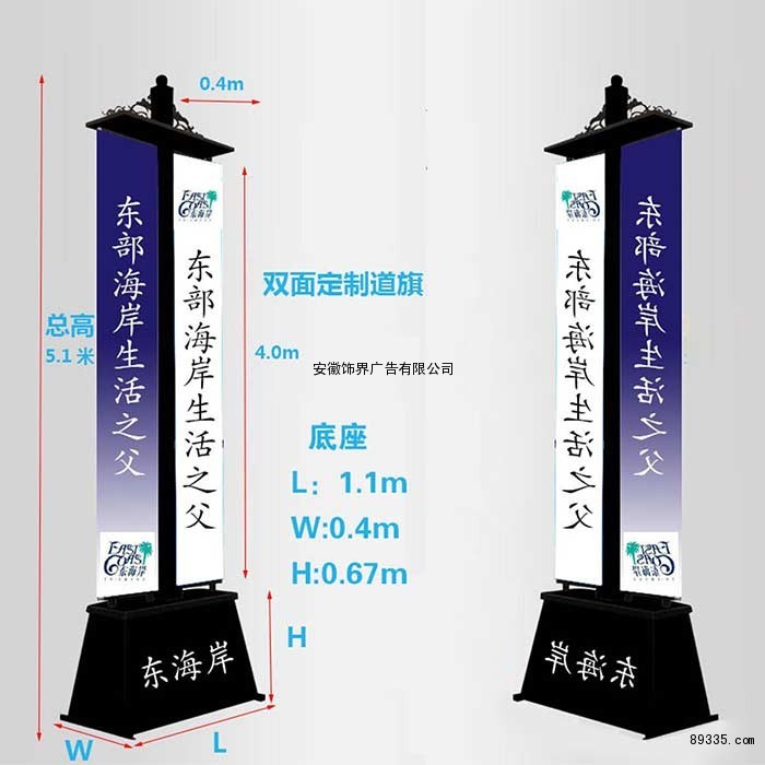 道旗总高:5米(可做3、4、5、6米等尺寸,以及其他尺寸,颜色与款式均可定制)