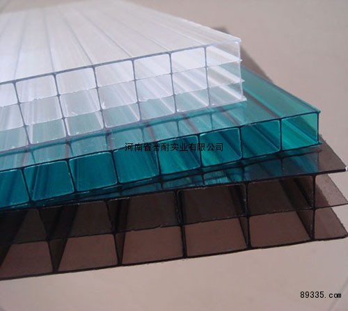 PC阳光板(又称聚碳酸酯中空板、玻璃卡普隆板、PC单层或多层中空板,聚碳酸脂板)是以高性能的工程塑料-----聚碳酸酯(PC)树脂加工而成,具有透明度高、质轻、抗冲击、隔音、隔热、难燃、抗老化等特点,但不耐酸,不耐碱,是一种高科技、综合性能极其卓越、节能环保型塑料板材,是目前国际上普遍采用的塑料建筑材料,有其他建筑装饰材料(如玻璃、有机玻璃等)无法比拟的优点,有“不碎玻璃”之称。广泛应用于温室/工业厂房、装潢、广告招牌、停车棚、通道采光雨披住宅、商厦采光天幕、展览采光、体育场馆、游泳池、仓库采光顶商业、工厂、体育场馆的采光天棚和遮阳雨棚、农业温室、养殖业和花卉大棚、以及电话亭、书报亭、车站等公用设施、高速公路隔音、广告装饰领域。