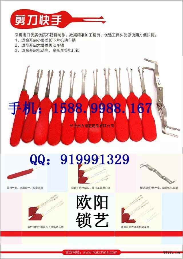 此项工具为新款傻瓜智能开启工具,主要用于开启单双面外切牙花的片子锁,综合钥匙与锁片的通常牙花间距,深度规律,运动规律,初步定样设计,大中小单双面片子锁都可以适用,是原来市场上其它同类产品所没有的功能,此产品基本包括了80%的单双牙花的片子锁,是专业锁匠,开锁公司培训初学者的好帮手,也是锁匠必备的专业工具!
