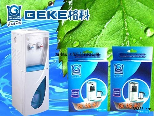 【产品优点】:本产品是专门针对饮水机使用特点而开发的绿色环保型高科技产品,能快速分解附着在热胆内壁、发热管上的水垢,对饮水机零部件无任何腐蚀,清洗后饮水机可以直接使用,无任何残留。