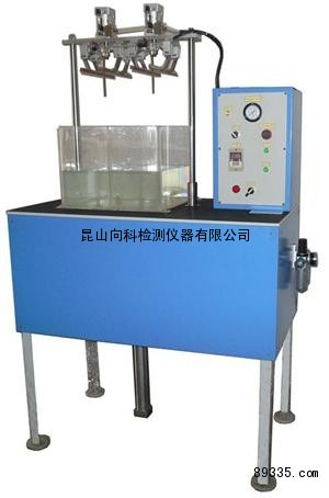 产品说明:鞋衬耐渗水试验机适用于各种用途的胶面胶和胶靴(鞋)的耐渗水试验。能快速检出胶面胶鞋,鞋内衬套是否防水,本机可置于生产线上,对制品进行全检,以全面控管制品之防水品质。测试时,以本机气压夹具,密封度件,并使夹具将试件带入深之水中,同时充入定压之空气,只要试件渗水,立即产生气泡,到达设定之测试秒数时,夹具自动带着试件浮出水面。