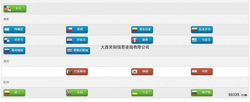北美、阿根廷、智利、哥伦比亚、厄瓜多尔、巴拿马、巴拉圭、秘鲁、乌拉圭、巴基斯坦、韩国、印度、波兰、英国、乌克兰、俄罗斯