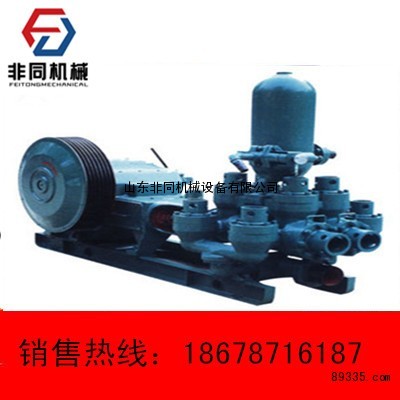 山东非同   该泵为卧式双缸双作用活塞泵。要用于地质、水源、浅层石油、冻结施工建井等钻进中供给冲洗液用,介质可为泥浆、清水等,亦可作为以上的输液泵。该泵通过更换不同直径的缸套、活塞套和活塞,可获得不同的流量与压力