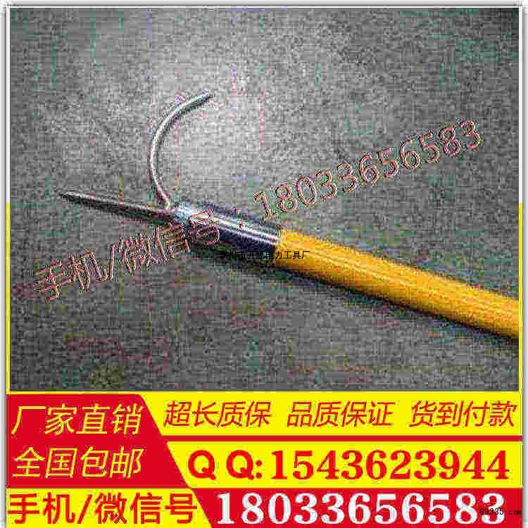 异物杆是用来清除挂在供电线路上的异物(如树枝 塑料袋 风筝等)的**工具,其功能可以挑、钩、锯、打。该工具用环氧树脂玻璃纤维管材料为杆身,绝缘性能好。重量轻,可以伸缩,携带方便,杆头部刀据和钩尖用不锈钢材料制作,不但防锈,而且锋利。更换方便。伸缩机构是定位销锁紧,伸长时拉出,当拉到看见刻线时停住,而后左右转动,转到一定角度,定位销会自动弹出,从而定位锁紧,当收缩时用手指按下定位销同时往里推内管即可缩短。
