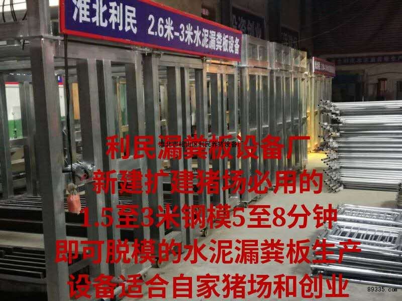 东奔西闯不如回家办厂,淮北利民是一家做养猪设备多年得厂家。时时关注着,对于养殖行业有一定得了解,当下由于国家要控制污染,很多养殖场已被无奈拆掉,这是大家有目共睹的,以后养殖场必须得走上正规化,【新建扩建养殖场必须使用大批量1.5至3米水泥漏粪板】据统计每年新建扩建猪场得需要3至5万片漏粪板,现本厂钢模水泥漏粪板生产设备,【【5至8分钟即可脱模,农家小院2到4人即可生产,投入2万至5万元,一天可生产80至100片,日利润2000至4000元,适合自家猪场和创业,】】安徽省淮北市利民养猪设备模具厂是畜牧专家首推的养殖设备生产厂家。位于安徽省淮北市相山区,地理位置优越,交通便利。 我厂拥有技术力量雄厚,专业知识扎实的研发团队,持续不断的开发设计,使产品质量得到不断升级。