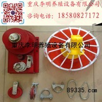 5、防栖线的安装:将弹簧安装端箱的防栖支架上,用防栖线连接胶片作为绝缘体连接弹簧及钢丝绳,拉紧钢丝绳,钢丝绳穿过每个料盘顶部的卡槽固定位,将弹簧勾到电机的保护罩或防栖支架上,用防栖线连接胶片作为绝缘体连接弹簧及钢丝绳,用钢丝绳锁夹紧钢丝绳。 弹簧的拉伸长度不得超过其正常长度的1.5倍。为了避免家禽站到上面,钢丝绳必须拉直。