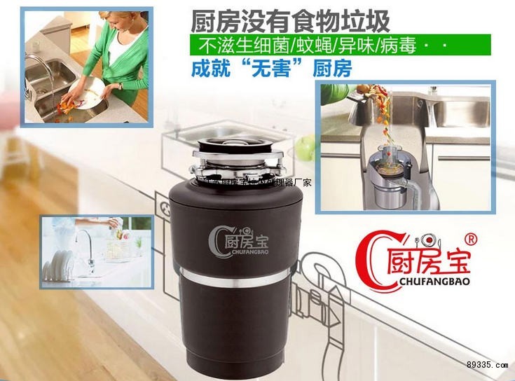 厨房宝厨房垃圾处理器可完全消除家中易腐食物垃圾存放和转移的烦恼,保持家庭卫生洁净,从源头消除了食物垃圾滋生细菌对家庭成员健康和环境的困扰。厨房宝厨房垃圾处理器可在任何普通家庭的厨房中安装使用(包括已装修的家庭),其中商用食物垃圾处理设备可在食堂、宾馆、酒店、饭店中使用。