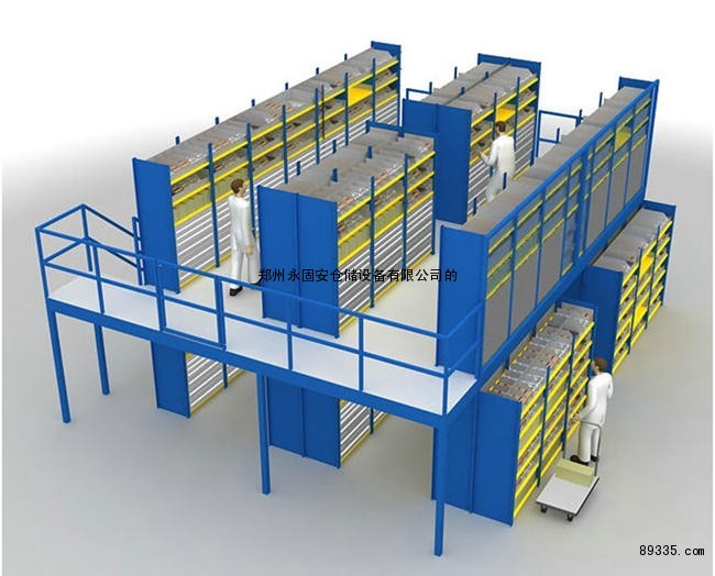 阁楼货架平台系统是在已有的工作场地或货架上建一个中间阁楼,以增加存储空间,可做二、三层阁楼,宜存取一些轻泡及中小件货物,适于多品种大批量或多品种小批量货物,人工存取货物,货物通常由叉车、液压升降台或货梯送至二楼、三楼,再由轻型小车或液压托盘车送至某一位置。此类系统,通常利用轻型货架或重型货架作为主体和楼面板的支撑(根据单元货架的总载重量来决定选用何种货架),楼面板通常选用冷轧型钢楼板、花纹钢楼板或钢格栅楼板。此类系统在汽车零部件领域、汽车4S店、轻工、电子等行业有较多应用。
