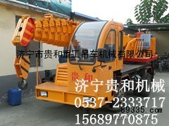 贵和小吊车**底盘,四缸柴油发动机,内齿50锰钢回转支撑,外齿转盘1.3米 无限旋转中心回转,可连续360度转向工作,六棱型吊臂,全自动液压伸缩支腿,吊装带高低速空挡、自动刹车,吊装采用可靠耐用的专业减速机,空构快速下降设计,液压系统采用无级变速系统,大大提高工作效率,流线型驾驶室,配有液压油散热器 在吊车长期工作时 液压油不会高温,保证吊装时吊车的速度正常工作 不受影响。大臂上配有夜间工作灯,大大提高工作视野,液压油管采用知名厂家双层钢丝油管,操作时不会漏油,钢管为镀锌油管,不会腐蚀,轨道齿面调淬火(保用10年)。 全液压全自动H型支腿、伸臂油缸、液压卷扬机、回转减速机、转盘、液压锁、液压油泵、多路液压操作阀,全部采用徐工三一吊车和泰安吊车配套配件