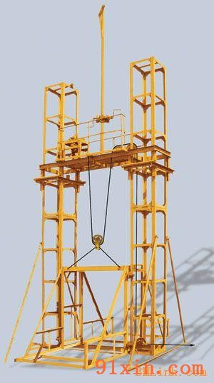 自升平台设有手动卷扬机,使升降机安装、拆卸、上升或下降无需外部提供动力,有效地保护了安装施工人员的人身安全,降低了施工人员的劳动强度。