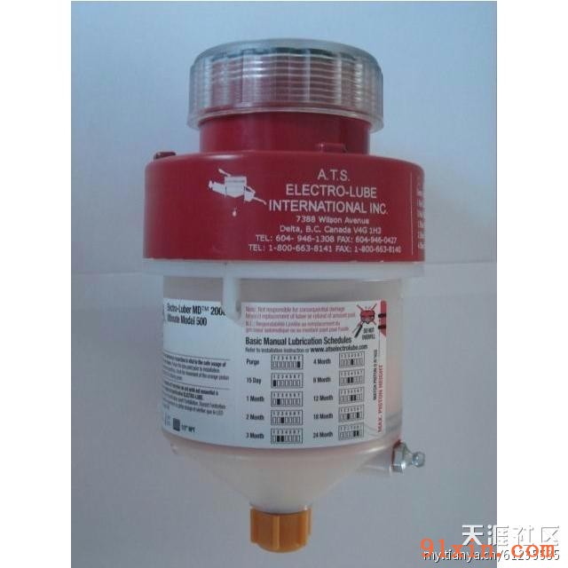 加拿大ATS产Jumbo-Luber大容量单点自动注油器(容积475ml)。【单点注油器 自动注油器】能够保证你的设备处于良好的润滑状态,一年365天的分分秒秒都可以为你的设备上的轴承、齿轮、齿条、链条、链轮、轨道、丝杠等零部件提供新鲜的润滑剂。可以用于港口、风力发电机、钢铁厂、自来水厂、汽车制造厂、石油化工行业、食品行业、煤炭等所有需要润滑的场所。【单点注油器 注油器】